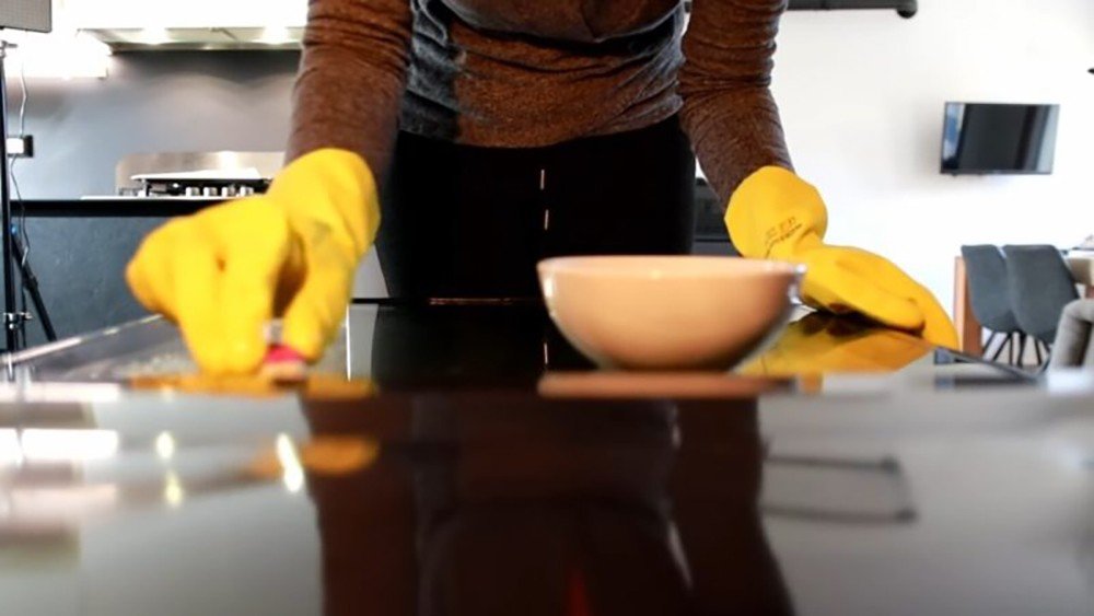 Паста успешно удаляет жир, налёт, разводы и всевозможные пятна. Если же пятна застарелые и трудновыводимые, оставьте пасту на некоторое время «поработать», затем приступайте к уборке.