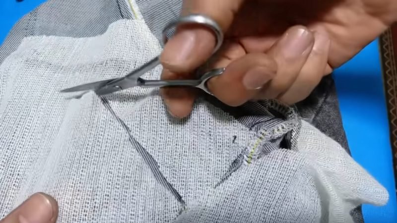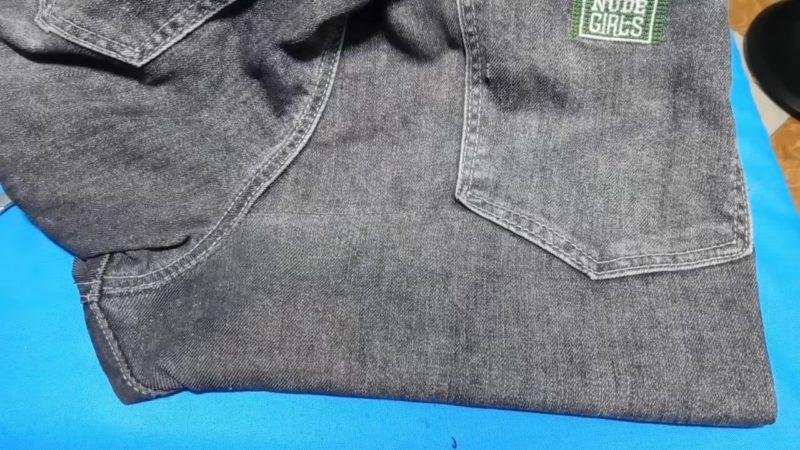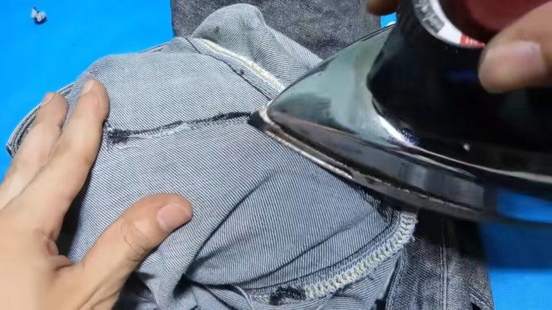 Затем вывернуть джинсы наизнанку и разгладить края шва утюгом.