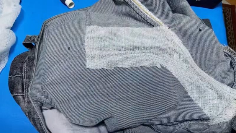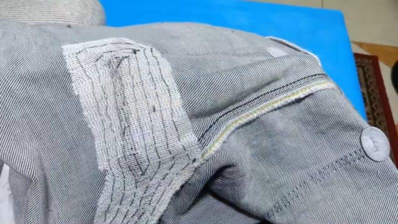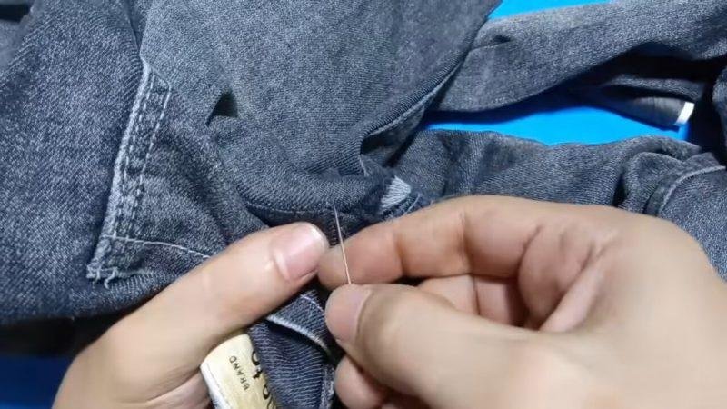 Прежде всего, дырку необходимо крепко зашить потайным швом, выбрав нитки в тон джинсам.