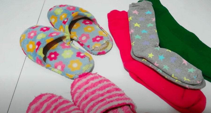 Вот и все! Вот так всего за несколько минут можно с помощью обыкновенных носков обновить старые тапочки. А приятным бонусом такого обновления может стать еще и утепление тапочек, если вы возьмете носки потолще.