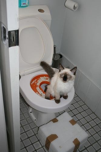 Конечно, с этим делом придётся поиграться, но оно того стоит. Вы приучили свою кошку к унитазу?