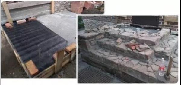 Через несколько дней, я сделал отсечную гидроизоляцию и после того только возвел ступеньки, одновременно облицевав их камнем.