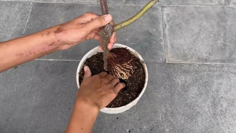 Спустя 2 месяца вы увидите много корешков. И вот теперь обрезаем черенок от розы. Затем нужно высадить в грунт, как обычно.