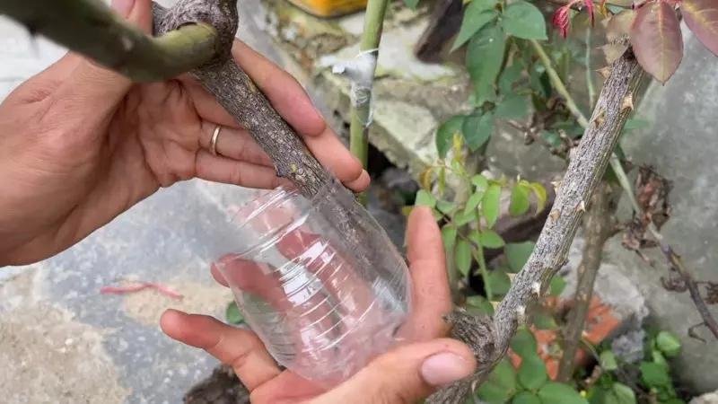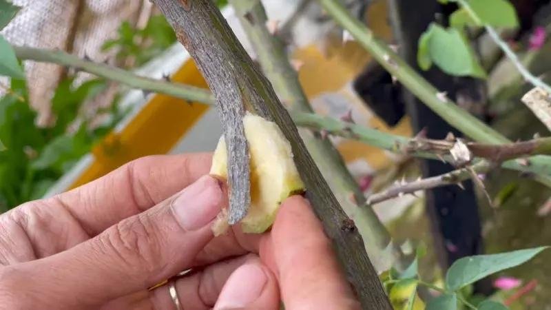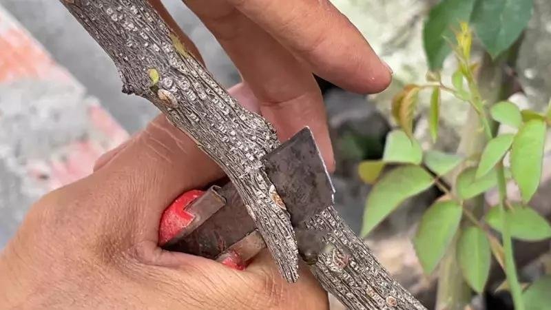 Ветвь розы должна сначала одревеснеть. После этого нужно сделать надрез острым ножом, который перед этим обеззаразьте.