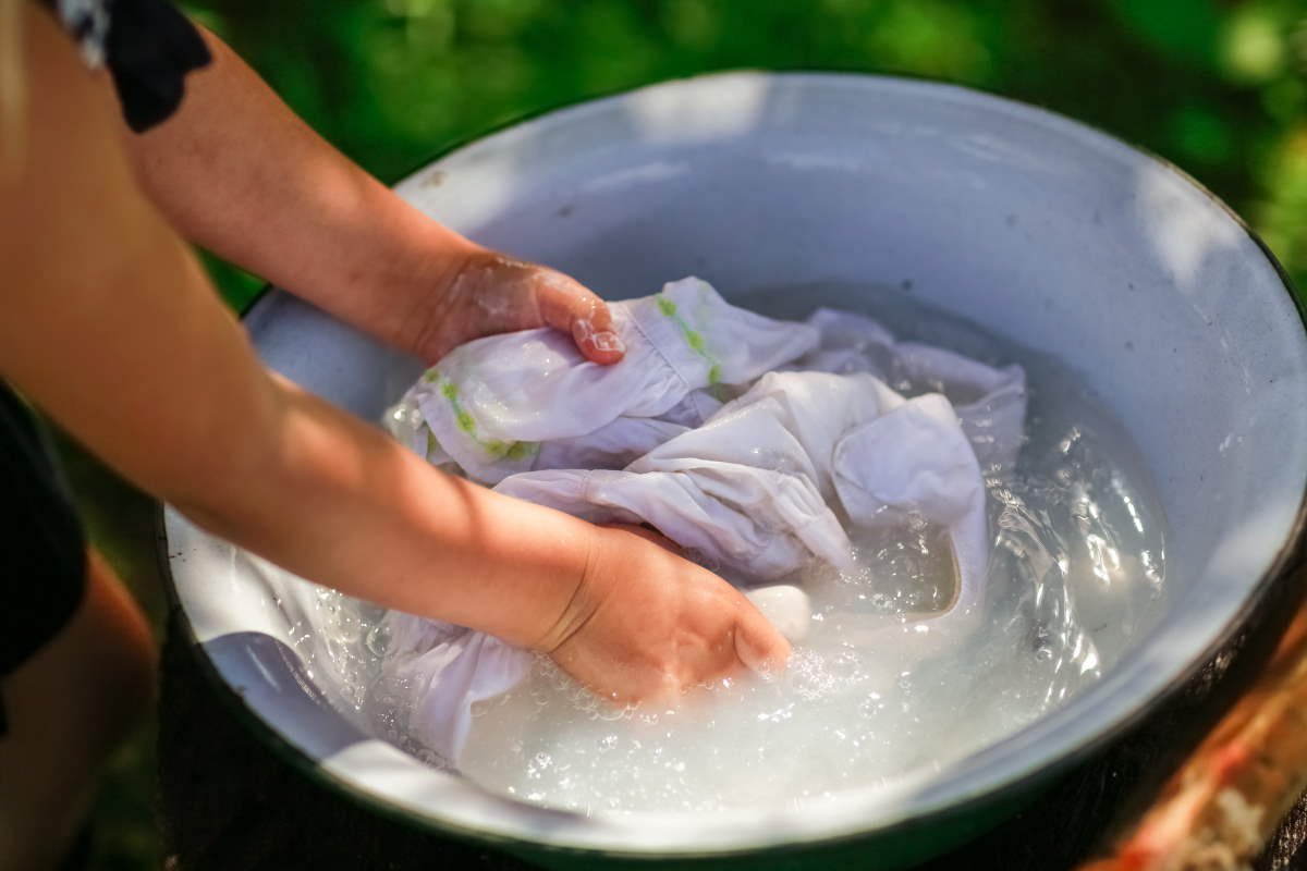 Для стирки орехами вручную добавь несколько скорлупок в таз с теплой водой и дай им полежать 15 минут. Когда образуется пена, можно стирать. После стирки вещи надо прополоскать в холодной воде.