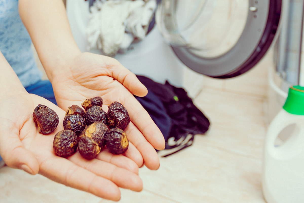 Мыльные орехи для стирки используются как капсулы для стирки. Чтобы постирать вещи в стиральной машинке, внутрь барабана помести полотняный мешочек с 6–8 скорлупками мыльного ореха. Это количество рассчитано на 3 кг белья.