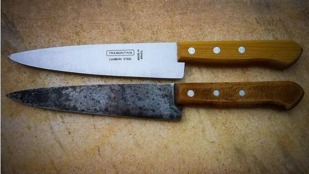 Кроме того, углеродистая сталь издает неприятный многим запах окисляющегося железа. Такие ножи выбирают люди, которые готовы ухаживать за ними и вытирать насухо после каждого использования.