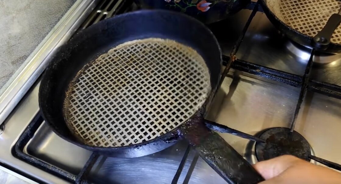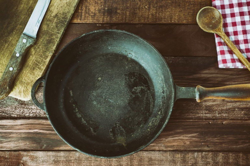 Важно: способ подходит чугунным, алюминиевым и дюралевым сковородкам.