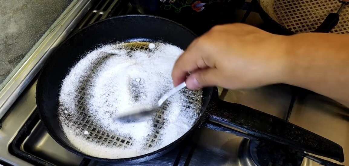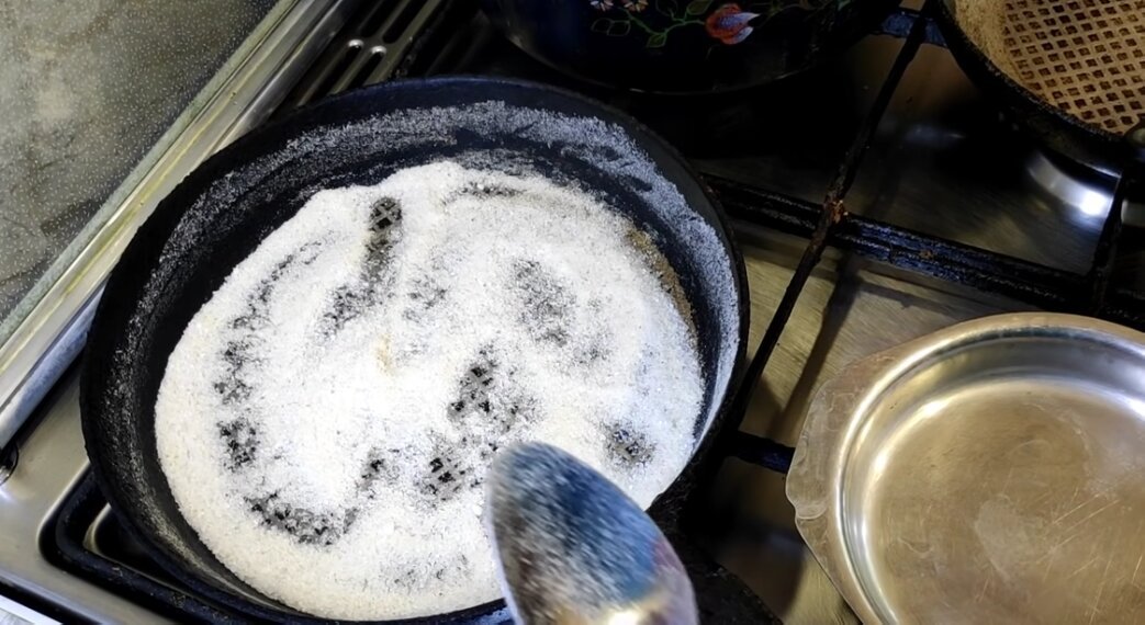 Избежать таких неприятных ситуаций поможет один простой способ. Для начал на сковороду нужно высыпать две столовые ложки обычной поваренной соли.