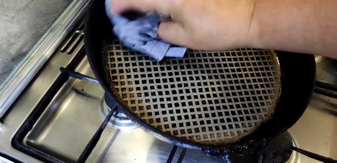 Сковородку после всей описанной процедуры необходимо протереть тряпкой.