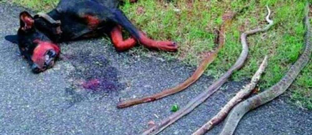 Почувствовав неладное, хозяева добермана немедленно выбежали во двор, где застали свою собаку в схватке с несколькими кобрами.