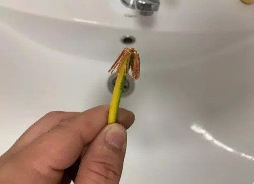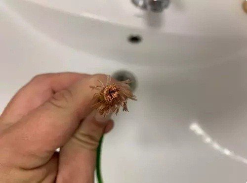 Чтобы прочистить засор, возьмите отрезок гибкого многожильного (много проволоки) провода длиной 20-30 см и сечением 2,5-4 мм2.