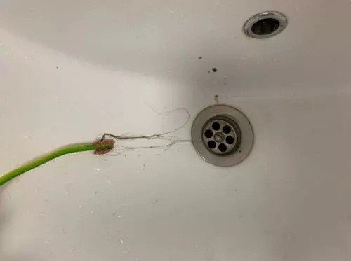Таким образом жир и волосы очень быстро выйдут из сифона. Даже если они не достаются через сливное отверстие, то эта самоделка снимает всю грязь со стенок и все уходит в канализацию. Достаточно обычно трех подходов и вода снова быстро уходит!