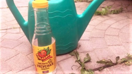 Уксус — мощный гербицид, способный «подкосить» даже такого гиганта, как борщевик Сосновского. Состав: 200 грамм уксуса 70% развести в 2,5 литрах холодной воды. Нанести разбрызгивателем на листья сорняков. Процедуру лучше всего проводить в жаркую безветренную погоду, так как в этих условиях действие уксуса усиливается.