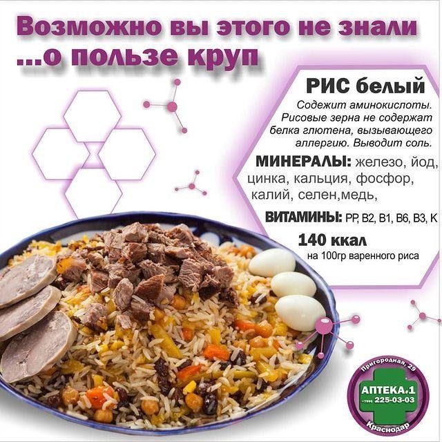 Рис — неотъемлемая часть нашего повседневного рациона. В нём содержится целых 8 видов аминокислот. Не говоря уже о полезных жирах, множестве различных витаминов и минералов.