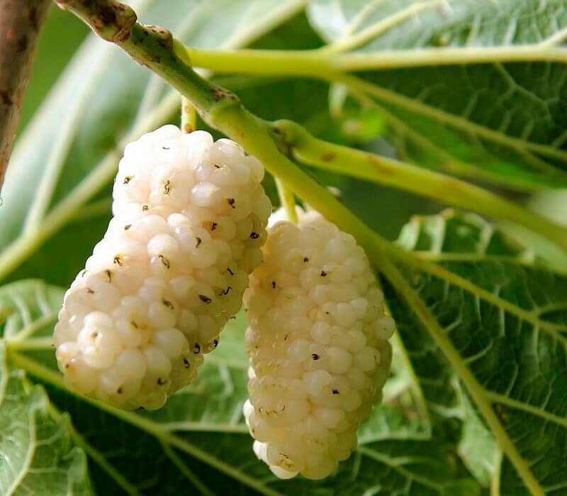 Белая шелковица содержит органические кислоты, большое количество витамина С, каротина, пектина, волокна, перевернутого сахара, смолы…