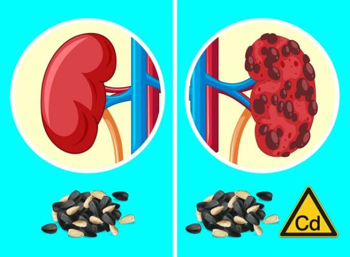 Существенный минус семечек подсолнуха — возможное наличие в них кадмия, который проникает в растения из почвы, воздуха и воды, наполненных отходами промышленных предприятий и вредными веществами из выхлопных газов.