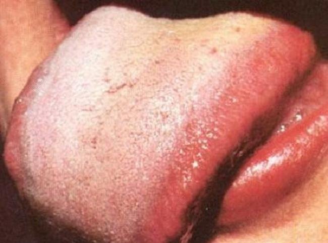 Чрезвычайно бледный, сухой язык также может указывать на дефицит крови, который как правило сопровождается чувством тревоги, головокружением, нарушением памяти, бессонницей, потрескавшимися губами или анемией.